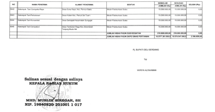 Hal lain, misalnya terjadi defisit Pemkab Deli Serdang di Ta 2024, termasuk menyurati Poktan yang telah mengajukan permohonan , kendati Poktan tersebut belum memahami haknya.