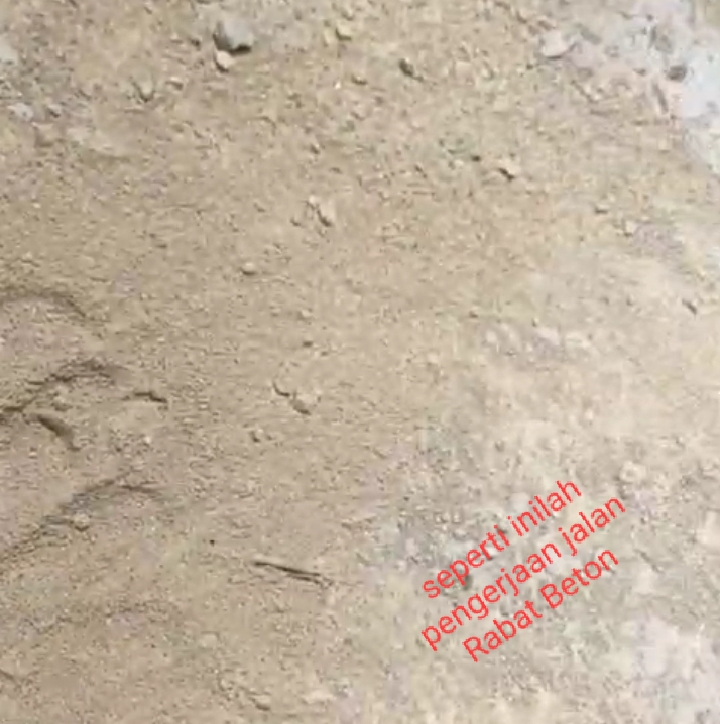 Disinyalir proyek jalan rabat beton tersebut dibangun hanya menggunakan campuran material pasir gunung dan semen, ujarnya.