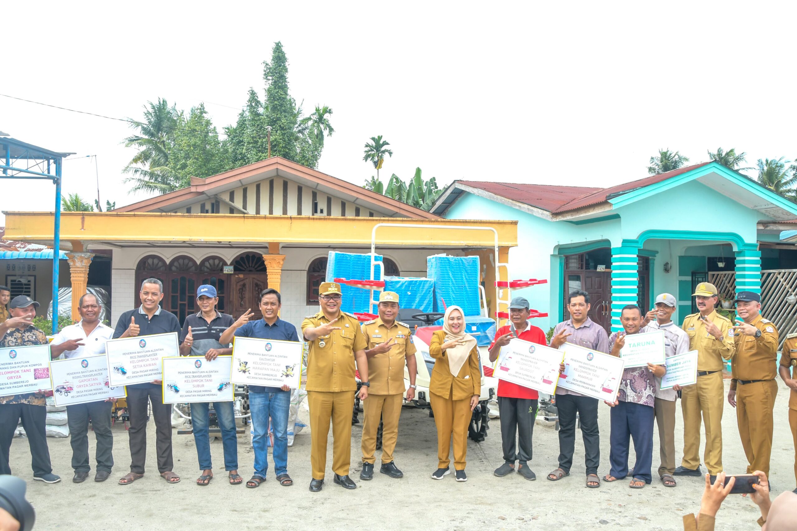Selain menyerah benih Bawang Merah, Bupati juga menyerahkan bantuan 16 unit handsprayer, satu unit riding transplanter, dua unit rice transplanter, satu unit cultivator kepada sejumlah Poktan di Kec Pagar. Merbau.